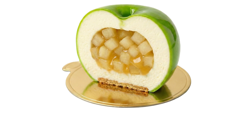 But the true surprise comes when the knife meets the shell. Inside, the illusion breaks open into layers of mousse, compote, cream and texture, crafted to create a flavor journey that unfolds slowly and deliberately.